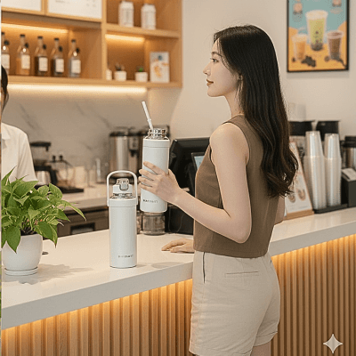 ✔ Thiết kế ống hút + nắp bật – uống tiện lợi, hạn chế đổ tràn