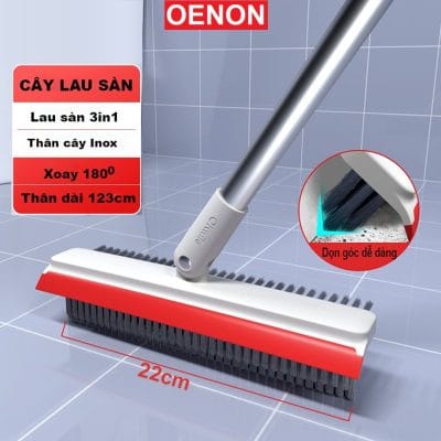 Sản phẩm được thiết kế chắc chắn với thân inox, kết hợp nhựa PP và cao su, mang lại độ bền cao và khả năng sử dụng lâu dài trong môi trường ẩm ướt. Cấu trúc 2 trong 1 cho phép vừa chà sạch vết bẩn, vừa gạt nước hiệu quả, giúp sàn khô ráo sau khi vệ sinh.
