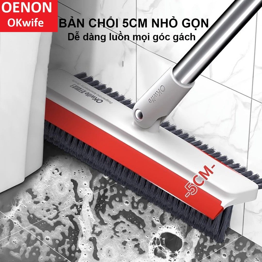 Cây chà nhà tắm đa năng – Cây lau sàn nhà tắm đa năng 2 trong 1 là dụng cụ vệ sinh tiện lợi, tích hợp chổi cọ sàn toilet và thanh gạt nước, giúp làm sạch nhanh chóng các khu vực như sàn nhà tắm, nhà vệ sinh, ban công và các góc khuất khó tiếp cận.