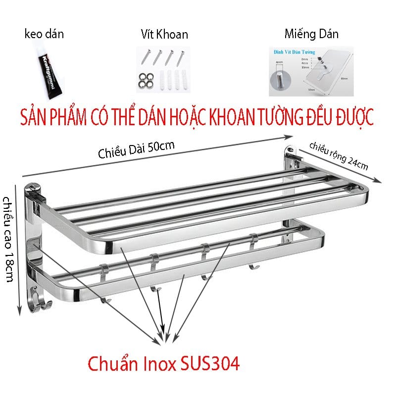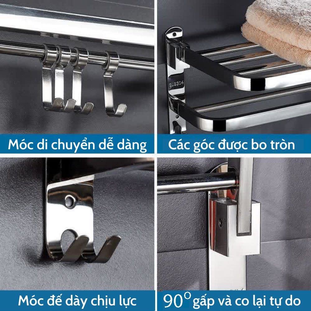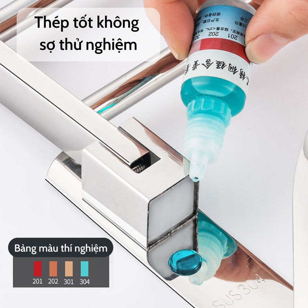 Giá treo khăn nhà tắm OENONVN được làm từ inox SUS304, phù hợp sử dụng trong không gian phòng tắm gia đình. Sản phẩm có thể lắp đặt bằng miếng dán tường hoặc khoan vít, thuận tiện cho nhiều loại bề mặt.