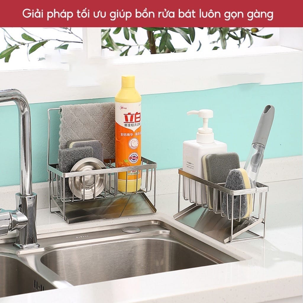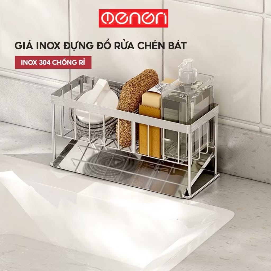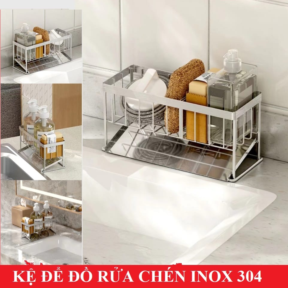 Kệ INOX Để Đồ Rửa Chén Bát Lavabo Có Khay Hứng Nước Tiện Lợi – OENONVN