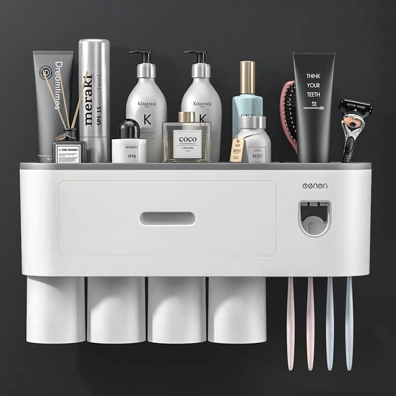 Kệ Nhả Kem Đánh Răng 4 Cốc OENONVN – Nhựa ABS, Dán Tường Gạch Men